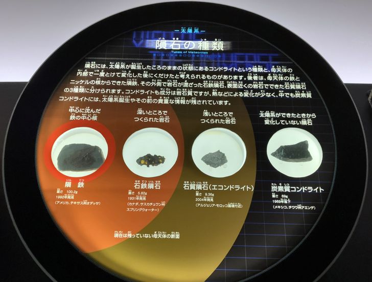 理工館6階と天文館5階には「隕石」の展示がたくさんあります。