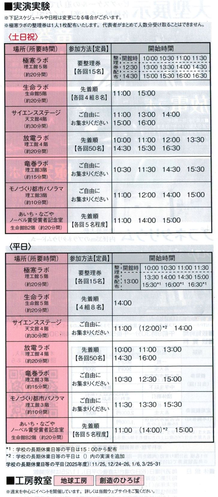 2025年11月に名古屋市科学館の「見学ガイド」が新版となりました。改装中のレストランとミュージアムショップは12月中旬頃にオープンするようです。