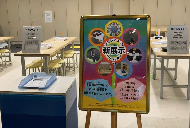 理工館3階の「技術のひろがり」のフロアに「創造のひろば」がありますが、来館者に「どんな新展示品があったらいいか。」アンケートをとり、学芸員がその意見をもとに製作した「みんなでつくる新展示プロジェクト」の展示がありました。また、「都市パノラマ」の展示に、恒例の「年末年始の飾り」がありました。
